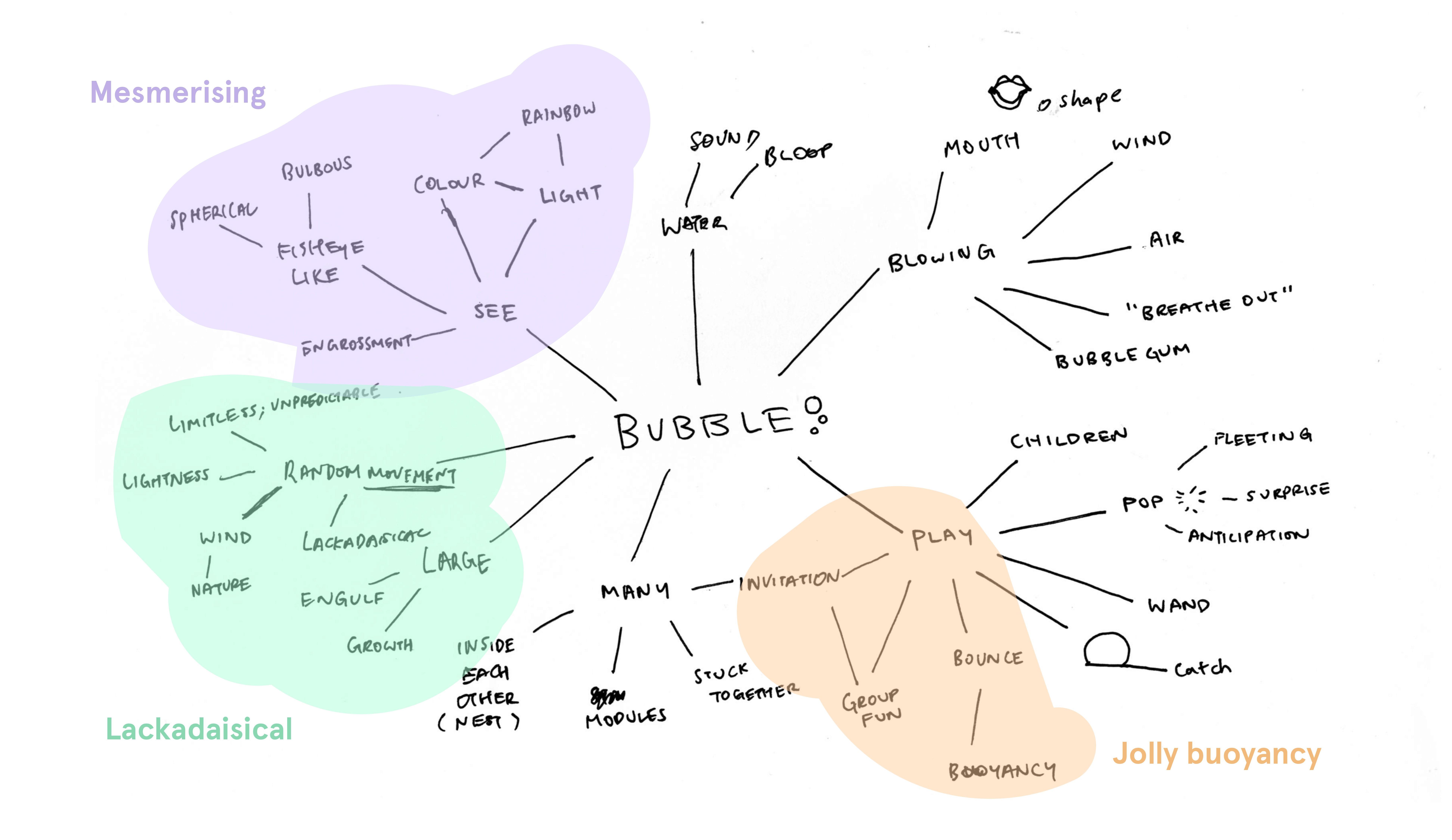 Bubbles have a remarkable ability to capture children’s attention and fascination for long periods of time. By mapping the various behaviours and qualities characteristic of bubbles, we explored how a plaything could embody their light-hearted, carefree nature.